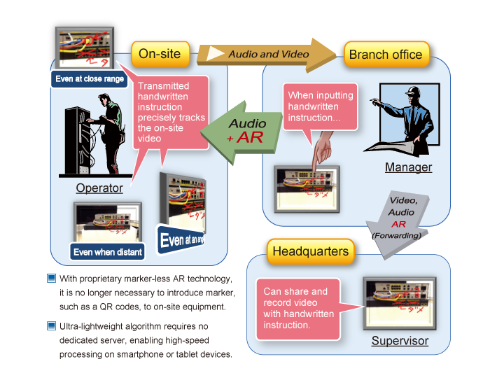 *Augmented reality (AR): A technology whereby virtual additional information, such as instruction contents, can be precisely overlapped on the real video and displayed to express instruction details